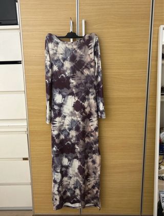 Vestido largo con un diseño estampado único. - Manga larga. - Corte maxi. - Estampado tie-dye.