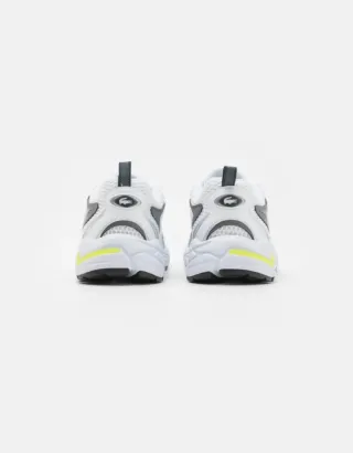 Zapatillas deportivas Lacoste modelo Storm 96. - Diseño en blanco con detalles en verde y plateado. - Material exterior de malla transpirable.