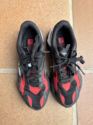 TALLA 37.5 Zapatillas deportivas Puma con un diseño moderno y llamativo. - Combinación de colores negro y rojo. - Detalle de logo en la plantilla.