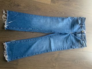 Pantalones vaqueros tipo culotte de Zara con un moderno acabado desgastado en los bajos. - Corte culotte. - Bajo deshilachado. - Lavado vaquero clásico.