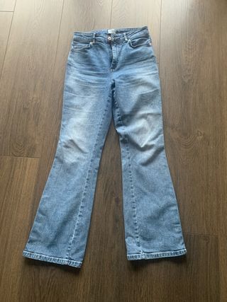 Vaqueros de corte flare de la marca Only. - Tiro alto. - Lavado azul claro. - Pierna acampanada. - Acabado campana tachuelas