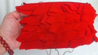 Elegante bolso de fiesta con un diseño de volantes. - Cadena metálica para colgar en el hombro. - Forro interior con bolsillo - Cierre superior.