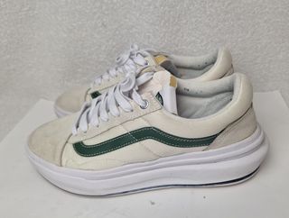Zapatillas Vans Old Skool en talla 40. Diseño clásico con detalles modernos. - Combinación de ante y lona. - Raya lateral característica de Vans en verde. - Suela de plataforma gruesa.