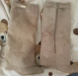 Botas altas tela beige mujer T.39