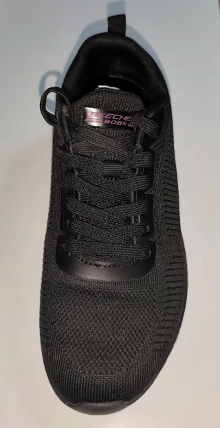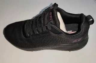 Zapatillas Skechers Bobs en color negro, con un diseño cómodo y moderno. - Ajuste ancho especial para mayor comodidad. - Tejido transpirable. - Cierre con cordones. - Se han usado una sola vez (error en talla, no le puede poner plantilla ortopédica, porque se le quedan pequeños entonces). Su precio es bastante más elevado de nuevo.
