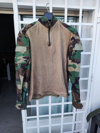 Chaqueta camuflaje militar, ideal para airsoft u otras actividades al aire libre.