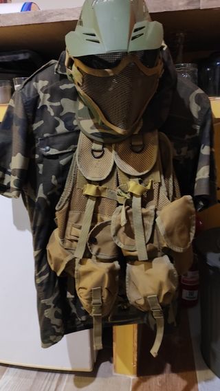 Traje completo de airsoft talla S, chaleco, cinturón y mascara de protección bucal/facial. Contactar si quereis medidas