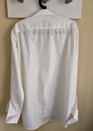 Elegante camisa de vestir de la marca Protocolo, ideal para bodas o eventos especiales. - Color blanco. - Cuello clásico. - Puños de gemelos. En mi perfil incluyo camisa, chaleco y traje para boda o evento. Si te interesa, pregúntame precio por el conjunto.