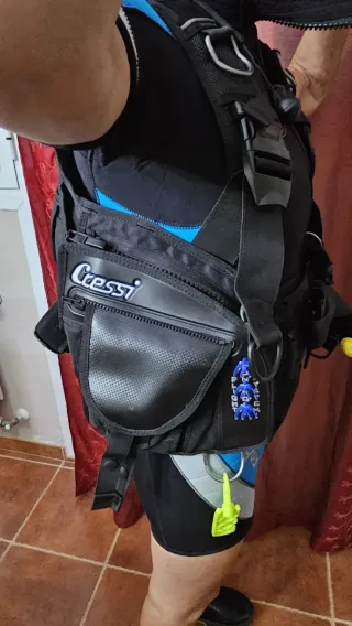 Chaleco de buceo Cressi en color negro y azul. - Diseño moderno y funcional. - Bolsillos amplios para accesorios. - Cierres ajustables para mayor comodidad.