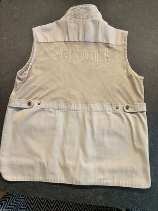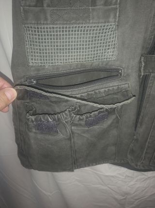 Chaleco de caza con bolsillos de quita y pon vintage. Tiene el tirante roto pero la cremallera funciona perfectamente