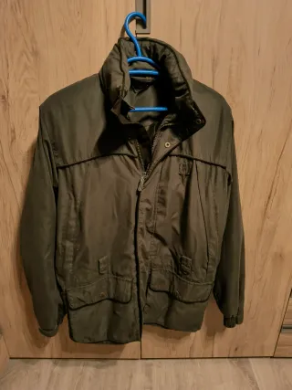 Chaqueta de la marca Muela, talla S, en muy buen estado. Modelo tipo parca, ideal para caza, montaña o uso urbano en invierno. Dispone de: Bolsillos amplios con solapa y botón. Capucha escondida y extraíble en el cuello. Goma interna ajustable en la cintura para mejor ajuste. Doble cremallera delantera y cierre adicional con botones a presión. Color verde oscuro, resistente y cálida. Muy cómoda y funcional. Precio algo negociable.