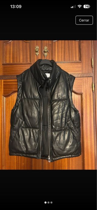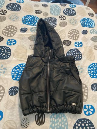 Chaleco acolchado de cuero sintético. - Diseño sin mangas. - Cierre de cremallera frontal. - Bolsillos laterales con cremallera. Con capucha