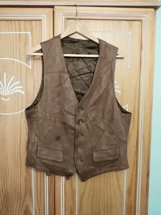 Chaleco de cuero para hombre. - Material: Cuero - Color: Marrón - Diseño: Sin mangas - Cierre: Botones