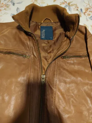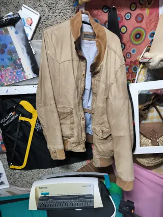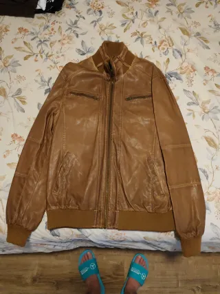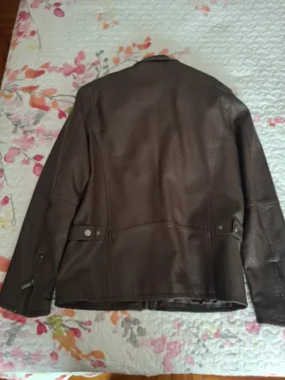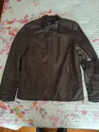 Cazadora de cuero de color marrón. Un clásico atemporal para cualquier guardarropa. En buen estado, solo usada unas veces Cuero caprino 100% La marca de la cazadora no sé cuel es