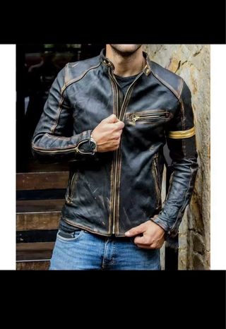 Chaqueta de cuero auténtico estilo americano. - Diseño clásico. - Cremallera frontal. - Bolsillos con cremallera. - Cinturón ajustable con hebillas.ideal para motos o estilos diferentes se escucha ofertas no ridiculas