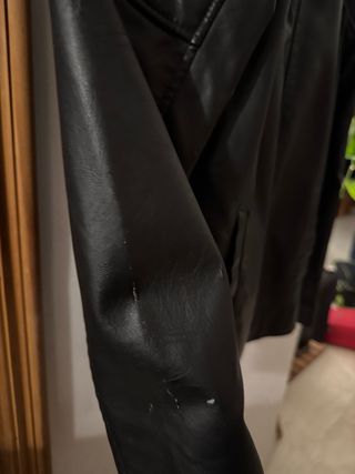 Chaqueta de cuero sintético con un diseño moderno y detalles en los hombros. - Cierre de cremallera frontal. - Bolsillos laterales. - Cuello redondo.