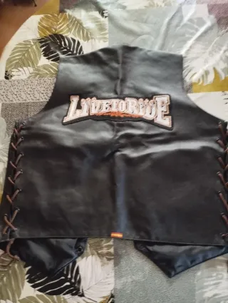 Chaleco de cuero. Con muy poco uso. Talla 2-3 XL - Parche de Harley-Davidson. - Parche de AC/DC. - Parche de Route 66. - Parche de Zombie Outbreak Response Team. - Parche de Capsule Corp.. - Parche de Force Recon USMC. - Parche de Airbourne. - Parche de calavera con cruz. - Par de ases. - Diseño con cremalleras frontales y laterales ajustables.