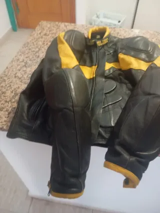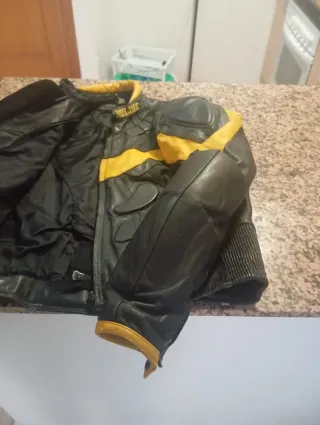 Chaqueta Moto Cuero Negra y Amarilla Talla M