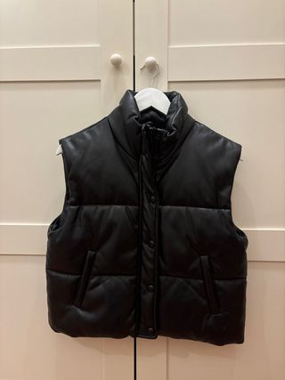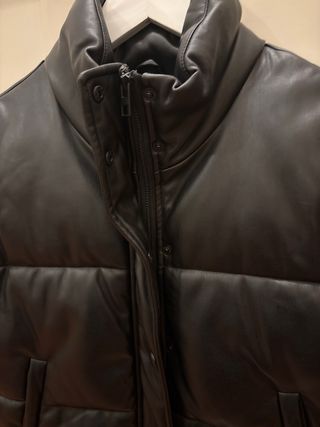 Chaleco de cuero sintético con capucha. - Diseño acolchado. - Cierre de cremallera. - Bolsillos laterales.