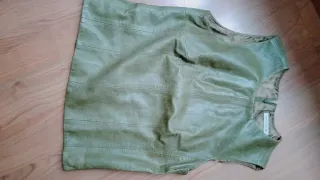 Chaleco de piel en tono verde. Un básico versátil para cualquier armario. - Diseño sin mangas. - Costuras detalladas.