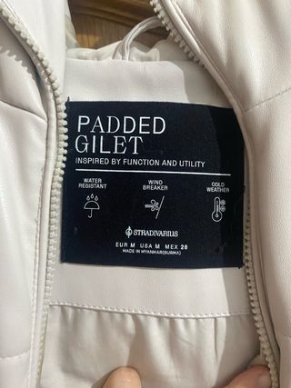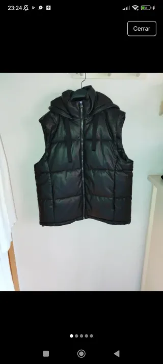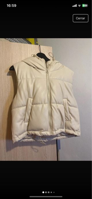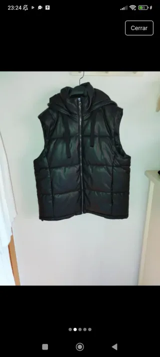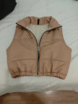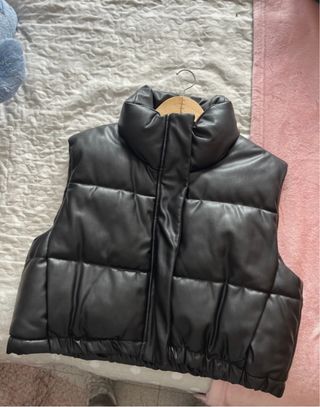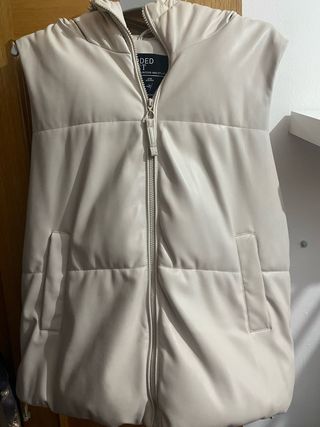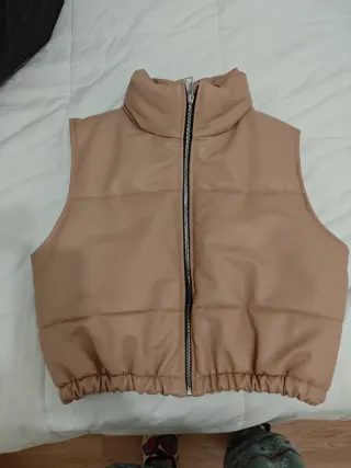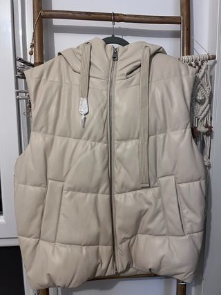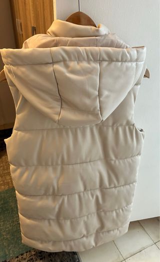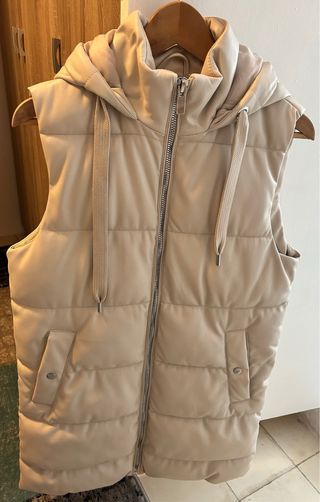 Chaleco acolchado de mujer piel sintética, talla S está sin usar  - Capucha integrada. - Cierre de cremallera frontal. - Bolsillos laterales con botón a presión. - Cordones ajustables en la capucha No negociable. No envío
