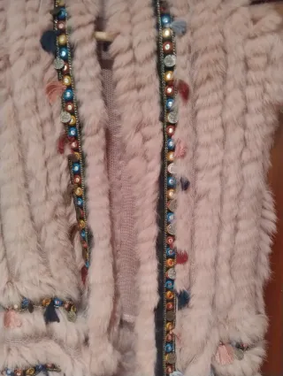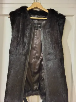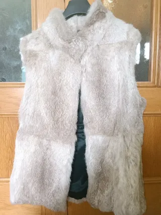 Elegante chaleco confeccionado en auténtica piel de conejo. Su diseño atemporal lo hace una prenda versátil para complementar tus atuendos. - Material: Piel de conejo genuina. - Acabado suave y cálido. - Diseño sin mangas.