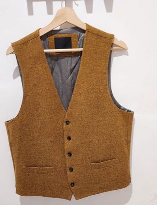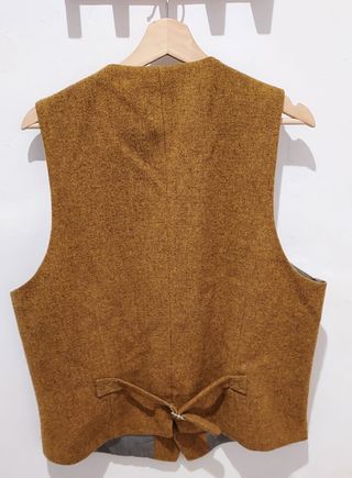 Elegante chaleco de tweed para hombre, con un clásico corte en V y cierre de cinco botones. Marca Roy Robson, color ocre, según etiqueta talla 52, 100 % lana virgen, en muy buen estado. Se puede enviar o recoger en Tienda Solidaria Piel de Mariposa BARCELONA C/ Torrent de l'olla 100 (+ info en la última foto)