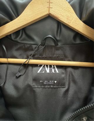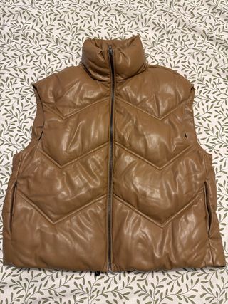 Chaleco acolchado de Zara con acabado efecto piel. - Diseño chevron. - Cuello alto. - Cierre de cremallera frontal.