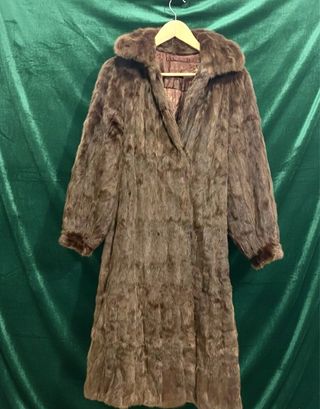 Elegante chaqueta larga de piel en tono marrón. Perfecta para añadir un toque sofisticado a cualquier atuendo. - Diseño clásico con cuello. - Manga larga. - Forro interior.