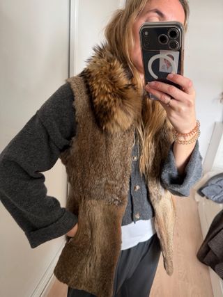 Elegante chaleco confeccionado con piel de conejo y zorro. - Diseño único y llamativo. - Aporta un toque de sofisticación a cualquier atuendo.