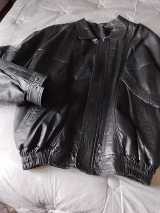 Vendo cazadora de piel negra tiene Los puños Rozados mirar foto talla G no hago envíos Recoger en Leganés