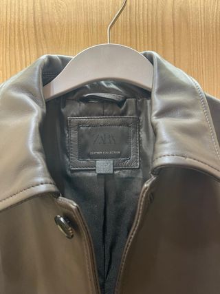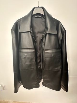 Cazadora de piel de la marca Zara, completamente nueva. - Diseño clásico con cuello - Cierre de botones - Dos bolsillos frontales.
