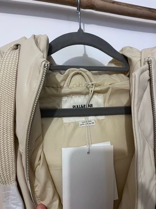 Chaleco nuevo con etiqueta, de Pull&Bear, talla M. Diseño acolchado sin mangas, con capucha ajustable con cordones y cierre frontal con cremallera. Incluye dos bolsillos laterales amplios y tejido de tacto suave tipo piel sintética. Color beige/arena, muy fácil de combinar, ideal para entretiempo o para llevar sobre sudaderas y jerseys en invierno. Estilo casual y urbano, tendencia. - Diseño acolchado. - Cierre de cremallera. - Cuello alto. 📌 Estado: nuevo con etiqueta 📌 Marca: Pull&Bear 📌 Talla: M