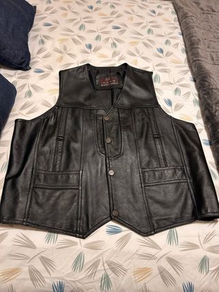 Chaleco de piel con un diseño clásico y versátil.POR LIQUIDACIÓN DE TODOS MIS ARTÍCULOS,,MIRA TODO LO QUE TENGO EN MI PERFIL,,SE ENTREGA EN MANO EN BARRIO DE LA JOTA,,NO ENVÍO - Cierre de botones. - Dos bolsillos frontales. - Forro interior de color marrón.