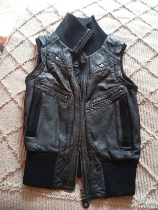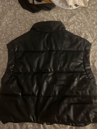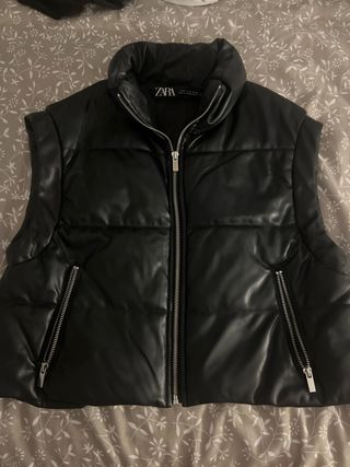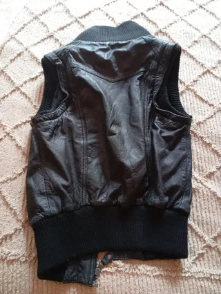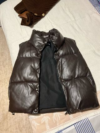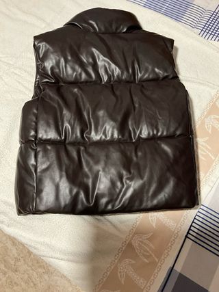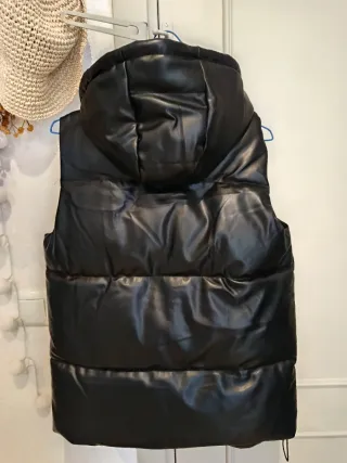 Chaleco de imitación piel con forro interior. Un básico versátil para añadir un toque de estilo a tus outfits. No se ha usado nunca. - Diseño con textura acanalada. - Cuello estilo chimenea. - Sin mangas. - Con un bolsillo en casa lateral. Entrega en mano en Vitoria.