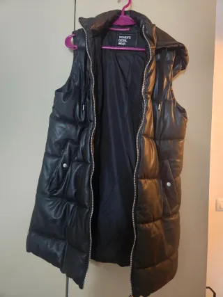 Chaleco largo con efecto piel. Es una prenda versátil y moderna. Abrigado Nada usado - Diseño acolchado. - Capucha. - Cierre de cremallera. - Bolsillos laterales.