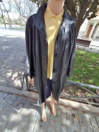 Chaqueta negra de cuero 100%, comprada en tienda vintage, con etiqueta. Precio original 65€. Imperfectos en la última foto. Medidas aprox: Largo: 65cm Ancho: 51cm Largo manga: 57cm