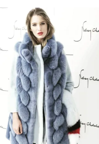 Abrigo de piel Nelsy Chelala de color azul cerúleo
