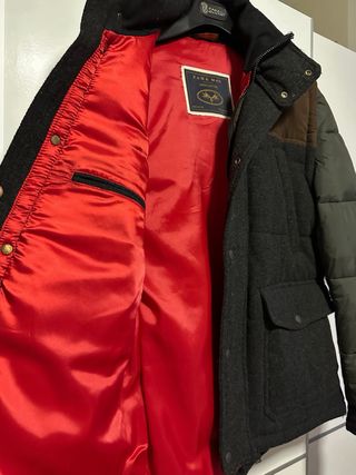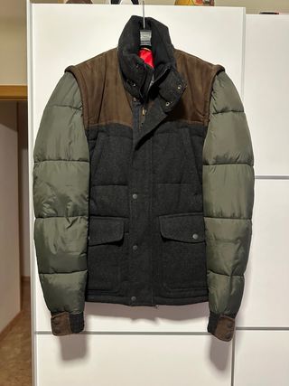 Abrigo de la conocida marca ANERKJENDT. Talla M. Muy calentito. Como se aprecia en las fotos, tiene borreguillo tanto en capucha como en la parte baja. Puño doble para que no pase el frío. Cuenta con muchos bolsillos. Tiene 3 posiciones debido al chaleco incorporado que lleva, la segunda cremallera y los corchetes. Es un chollazo Cualquier duda pregunte