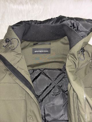 Chaqueta de hombre de Adolfo Domínguez en color verde oscuro. Diseño moderno y funcional. - Cuatro bolsillos frontales con solapa. - Capucha ajustable. - Cierre de cremallera y botones. - Puños elásticos.