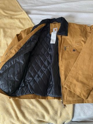 Chaqueta Carhartt en excelente estado, lista para usar. - Diseño clásico y resistente. - Cuello negro. - Cremallera frontal. - Bolsillo con cremallera en el pecho.
