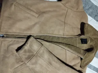 Chaqueta de la marca Zara con un diseño de rayas verticales en tonos beige y marrón. Es una prenda de estilo bomber con cuello y puños en marrón. - chaqueta bomber tipo cazadora denim del zara de esta temporada, fue un regalo de se pero me va muy grande. - Talla S oversize, hasta XI. - medidas en las últimas fotos . - 4 bolsillos x fuera y uno amplio x dentro -tejido tejano. - chaqueta entre tiempo con forro interior .. - más detalles escribe me - Cierre de cremallera. - Dos bolsillos delanteros con solapa y botón. - Forro interior en color marrón.