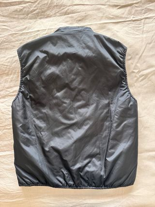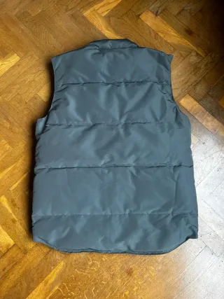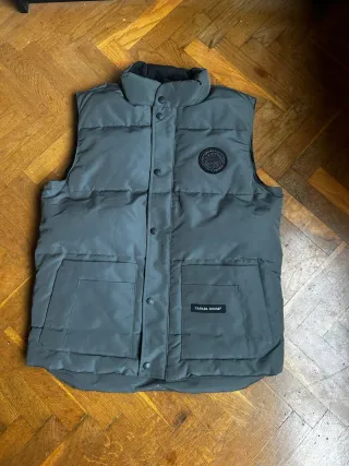 Chaleco acolchado mas fino con letras Canada Goose en color gris. Perfecto para añadir una capa extra de abrigo. Talla M ( puede ser unisex) - Cierre de botones a presión. - Dos bolsillos frontales con cierre. - Cuello alto. - Logo circular de las letras Canada Goose en el pecho. - Etiqueta con las letras Canada Goose en uno de los bolsillos. Nuevo sin usar. Se puede probar sin compromiso.