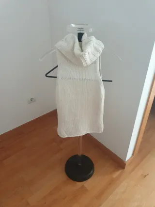 Chaleco de punto con cuello alto. - 36 cm de largo de hombros a cintura - Material: 100% algodón. - Diseño sin mangas.