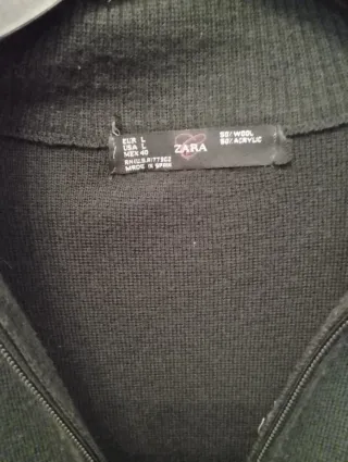 Chaqueta de Zara en color negro. - Cierre de cremallera. - Cuello alto. - Manga larga.