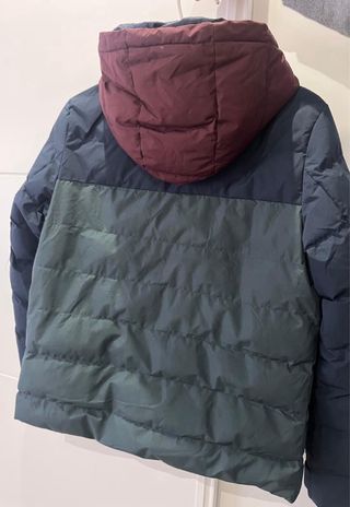 Chaqueta acolchada con capucha de la marca Silbon. - Diseño en bloques de color azul y verde. - Capucha con cordones ajustables. - Cremallera frontal. - Bolsillos laterales con cremallera.