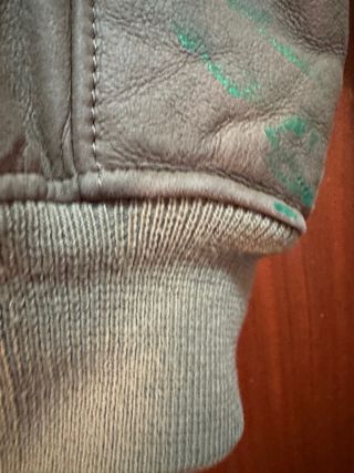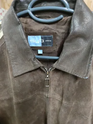 Chaqueta de ante con cuello de borrego. - Material: Ante - Color: Beige y marrón - Diseño tipo aviador - Cierre de cremallera frontal - Bolsillos con cremallera en el pecho - Puños y cintura elásticos Se nota la forma de los codos como se aprecia en las fotos. No mucho pero algo, esta recien limpiada