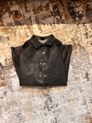 Chaqueta con acabado de cuero. (No es cuero de verdad, claramente) - Cierre de botones. - Dos bolsillos frontales.