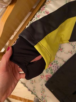 Tiene un agujero para meter los dedos pulgares y que abrigue más