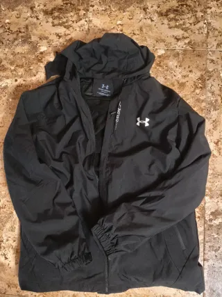 Chaqueta deportiva Under Armour en color negro. Diseño ligero y con capucha. - Cierre completo con cremallera. - Puños elásticos. - Logo de la marca en el pecho.